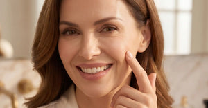 Skin with both oily and dry areas, usually oily in the T-zone and dry elsewhere. Needs balanced care to control oil while maintaining hydration.